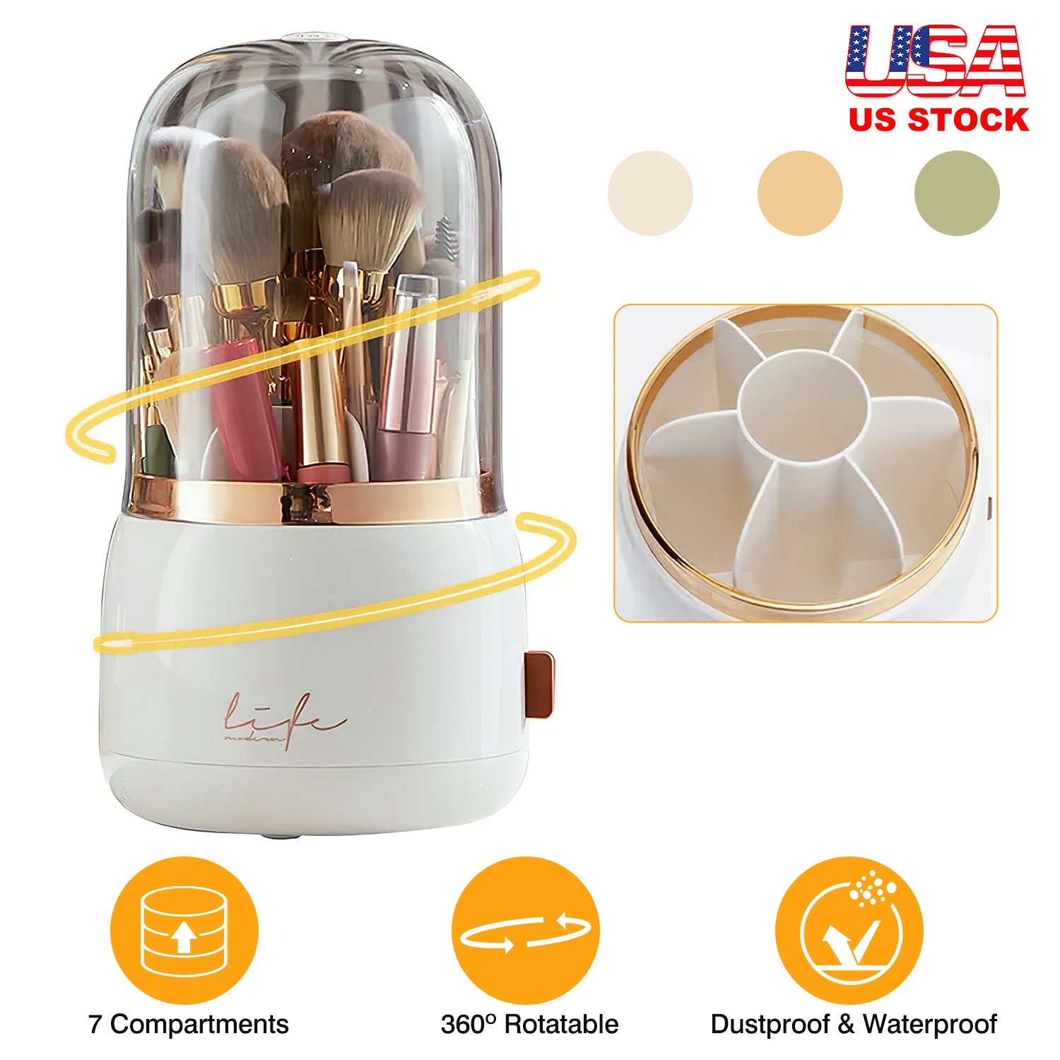 Home > 360° Rotating Makeup Brush Holder with Lid Makeup Organizer for Vanity Dustproof Makeup Brush Container with 7 Compartments